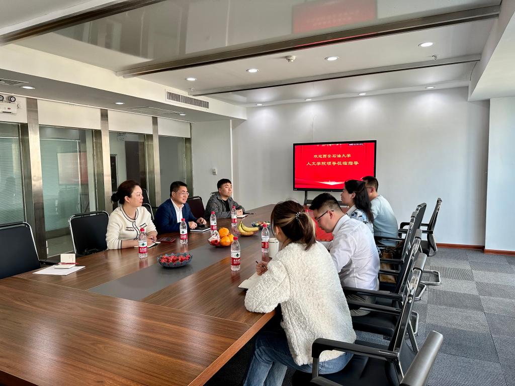 余小勇书记首先感谢中心的热情接待,随后他介绍了人文学院学科建设与人才培养等基本情况,提出加强与西安本地优秀企业的合作,深化校企协同育人,实现互利共赢。双方就建立联合培养基地、探索校企合作模式、提升人才培养质量等方面深入交流,并达成初步共识。