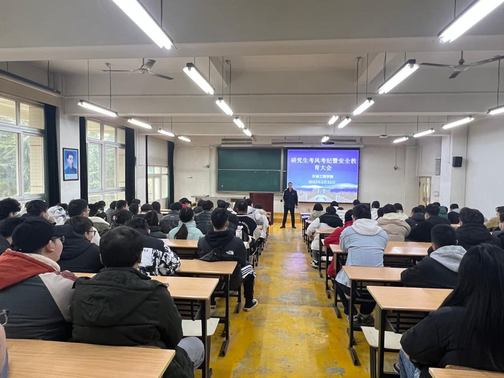 2月22日下午3点,石油工程学院在雁塔校区东阶301教室召开2022级研究生考风考纪暨安全教育大会,石油工程学院2022级全体研究生共150余人参加了会议,会议由学院研究生辅导员宋兴淼主持。