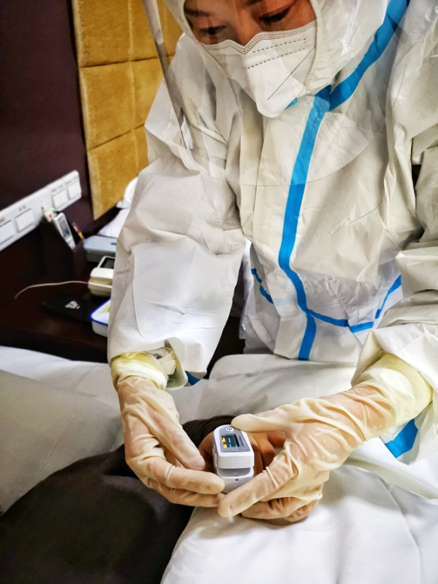 本次活动以健康驿站的一名新冠病毒肺炎患者突发身体严重不适的情况为演练场景。驿站工作人员接到求救信息后立即报告驿站工作专班负责人,救治小组携带制氧机、血氧仪和AED等设备迅速到达现场,通过对患者体温、血压、脉搏、血氧饱和度等检查快速判断患者的生命体征,在拨打120救助后,立即开展心肺复苏、电除颤、给氧、施针抢救等操作。经医护人员的抢救后,患者生命特征趋于好转并第一时间交校外120救护车转运至定点医院进行继续救治。