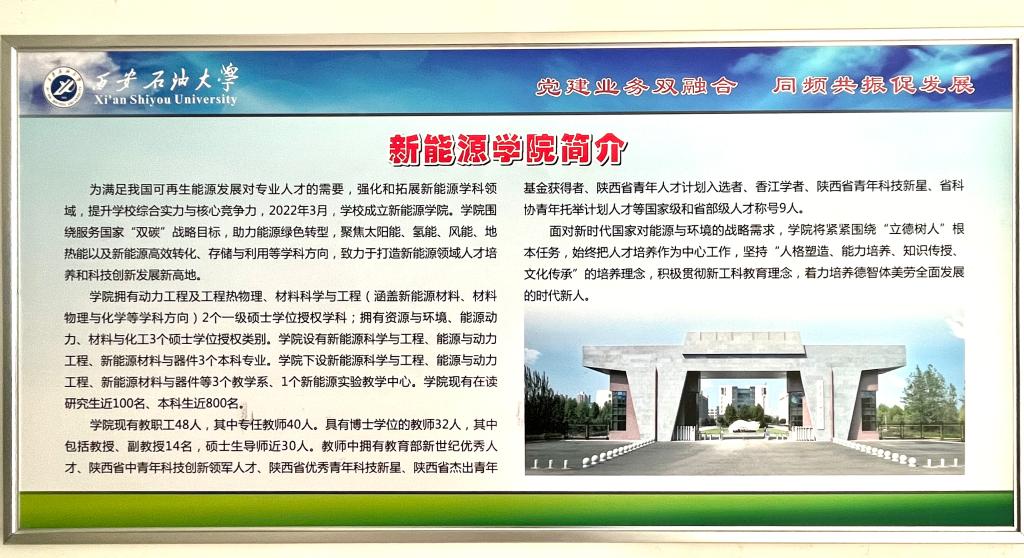 为进一步加强学院文化建设,夯实“党建+学风建设”创新模式,增强学生的学院荣誉感和自豪感,新能源学院在做好疫情防控工作的同时,聚焦主责主业,着力推进文化建设。近期,新能源学院携手党委组织部在鄠邑校区天工楼广泛开展了“党建业务双融合,同频共振促发展”党建文化墙和学院标识标牌形象墙建设活动,为学院全体师生精心打造了旗帜鲜明讲政治、突出特色有亮点的党建“文化墙”,合理布局了低碳绿色显特色、简洁大方接地气的学院形象墙,充分挖掘学院文化育人新动能,持续推动学院文化建设再上新台阶。