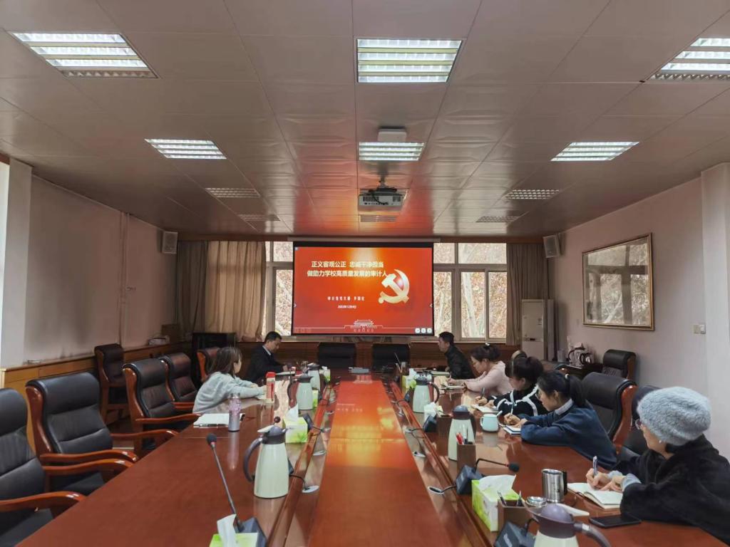 12月4日下午,在行政楼5楼会议室,审计处党支部书记李国柱同志为审计处全体党员同志讲授“正义客观公正 忠诚干净担当 做助力学校高质量发展的审计人”专题党课。
