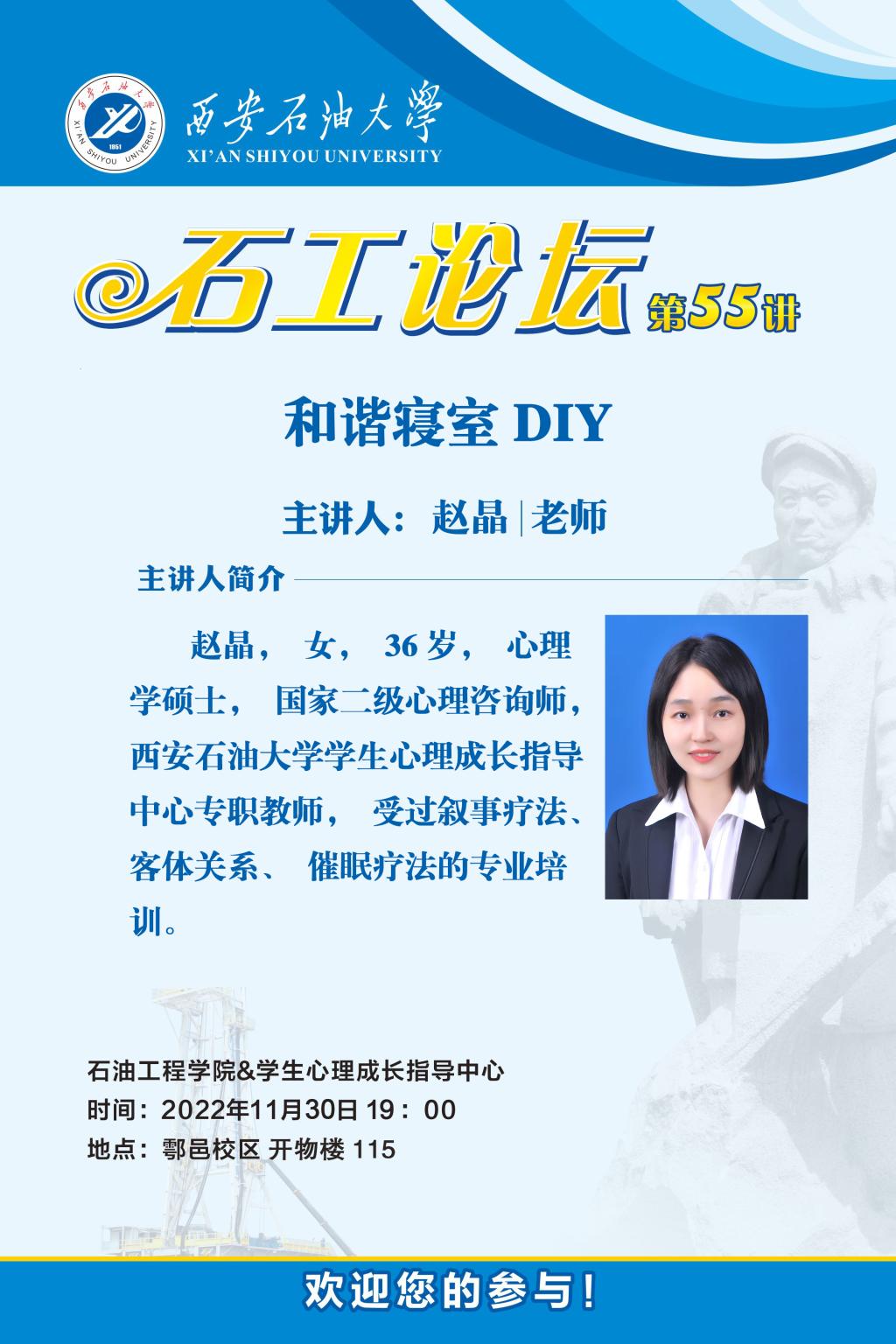 为帮助学生有效处理宿舍人际交往关系,营造温馨和谐的宿舍氛围,11月30日晚,石油工程学院举办了“石工论坛第55讲:和谐宿舍DIY”主题活动讲座。本次讲座邀请beat365学生工作处(学生心理成长指导中心)专职教师赵晶担任主讲,活动由石油工程学院2022级辅导员聂康晨主持。根据疫情防控要求,活动以线上线下相结合的方式进行,部分学生代表在线下参加。