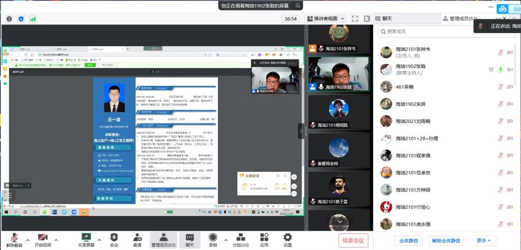 会议共有6名2019级海油专业优秀学生代表进行分享。