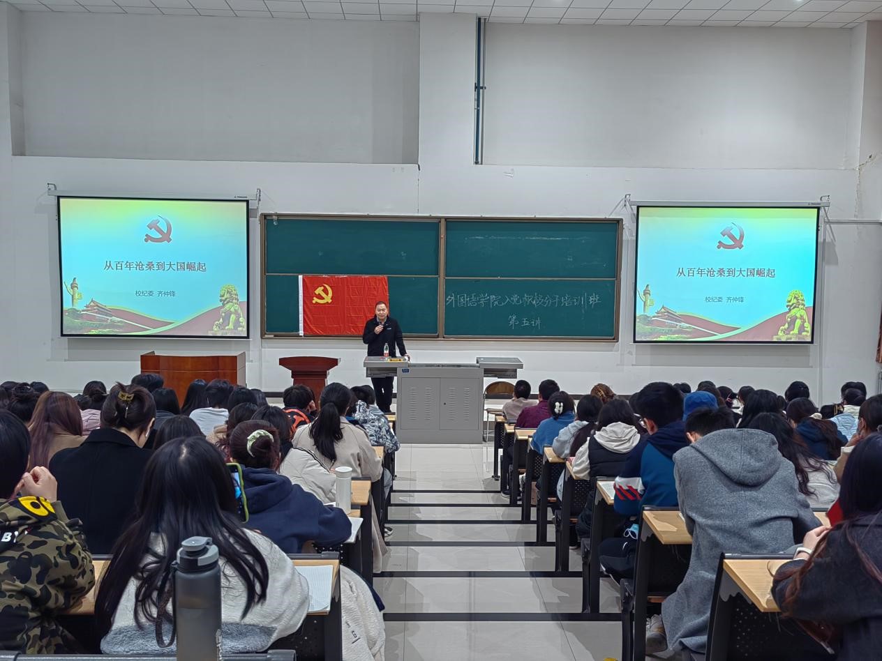 为增强入党积极分子对党的认识,了解党的百年历史,明确责任和使命,不断提升综合素质和能力。11月16日晚,外国语学院在鄠邑校区石工地科楼115教室举行第11期入党积极分子培训班第五次集中授课。邀请校纪委副书记齐仲锋担任主讲,学院党委副书记王业青主持。
