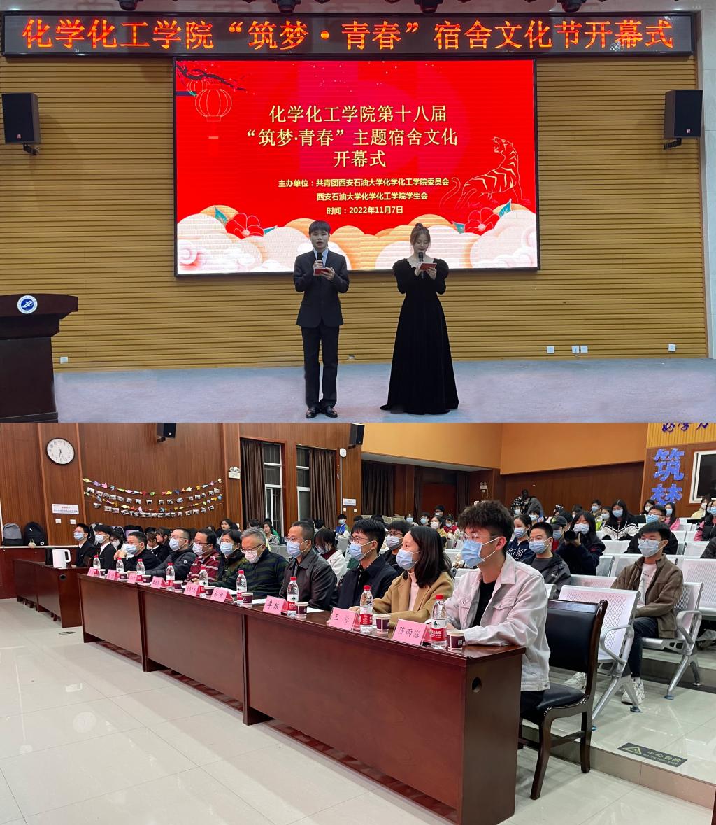 为进一步加强宿舍育人阵地建设,充分挖掘宿舍文化育人功能,促进学生健康成长和全面成才,11月7日晚,化学化工学院第十八届“筑梦·青春”宿舍文化节开幕式活动在鄠邑校区崇文楼118多功能报告厅顺利举办。学院党委书记司马文龙、院长王文珍、学院党委副书记祁帆、学工办主任周钰桐,校团委干事李政出席开幕式活动。学院各年级辅导员及部分学生代表共同参加。