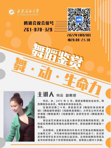 为了进一步拓宽beat365学生的视野,培养学生的学习兴趣,提高综合素质,推进校园文化建设,音乐系积极助力由教务处、学生处联合举办的“西石大微讲堂”。分别于2022年10月20、28日晚为全校师生分别开展了《聆听韵贯千载的琵琶之声》和《舞·动·生命力》的线上讲座,全校师生共计500余人观看讲座直播,本次讲座由音乐系副主任张帆副教授、何云副教授讲授。