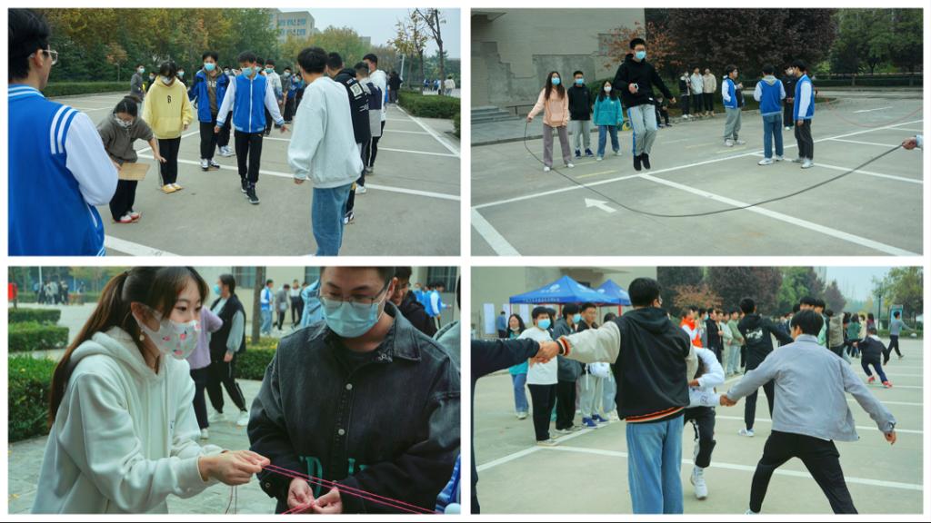 为进一步增进同学们的交流和友谊,增强团队凝聚力,提高身体素质,丰富课余文化生活,11月2日下午,地球科学与工程学院在开物楼东侧开展了2022级新生素质拓展活动。此次活动由新生辅导员姜英哲主持,全体2022级新生参加。