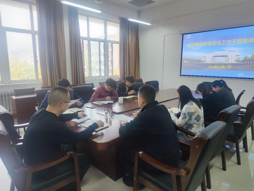 10月27日,经济管理学院在鄠邑校区崇文楼305会议室召开学生工作干部集体学习会,会议由学院党委副书记王刚主持。