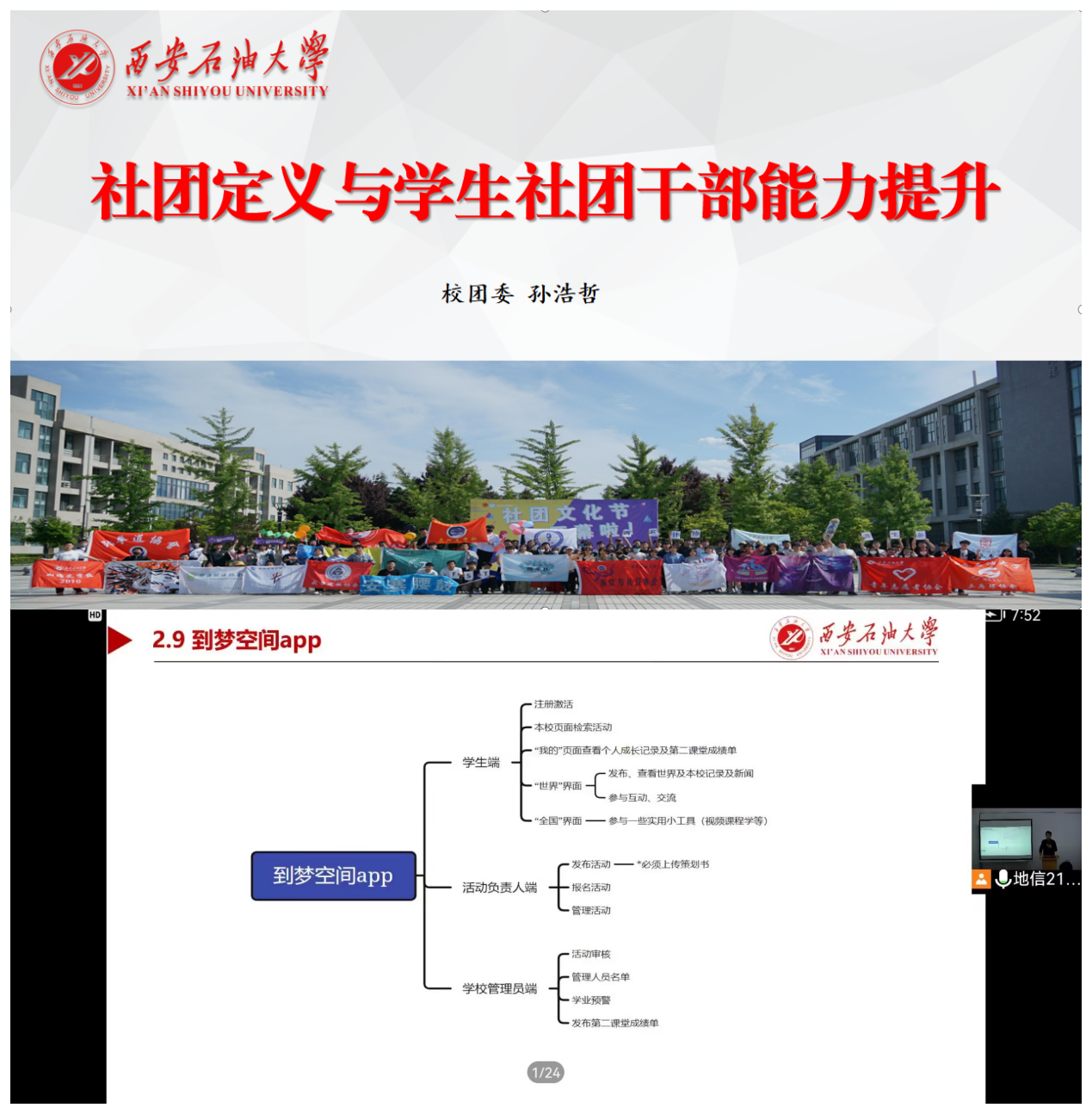 10月27日,校团委社团管理部负责人田晓慧、第二课堂运营中心负责人贾萌琪,分别实操的角度对社团年审、社团注册、社团活动审批、社团量化考核、第二课堂“到梦空间”软件使用等五个方面进行了详细的讲解。