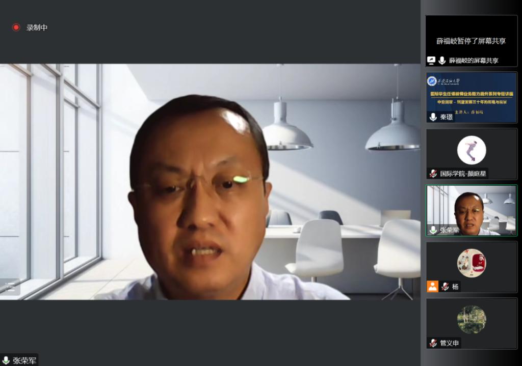 2022年10月27日晚,培训活动的首场讲座《中亚国家-转型发展三十年的历程与前景》于线上举行。该讲座由中国社会科学院俄罗斯东欧中亚研究所研究员、战略研究室主任,中俄战略协作高端合作智库办公室主任,国务院发展研究中心欧亚社会发展研究所研究员、中国国际电视台俄语频道特约评论员薛福岐博士主讲。副校长张荣军教授主持,陕西省人民对外友好协会欧亚部部长梁锋出席,beat365国际教育学院(丝路能源学院)、外国语学院、人文学院等院(系)及单位近150名师生参加了本次讲座。