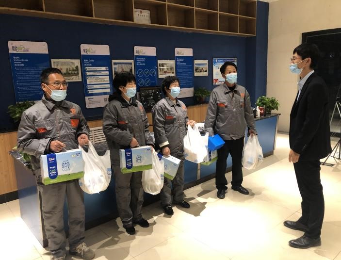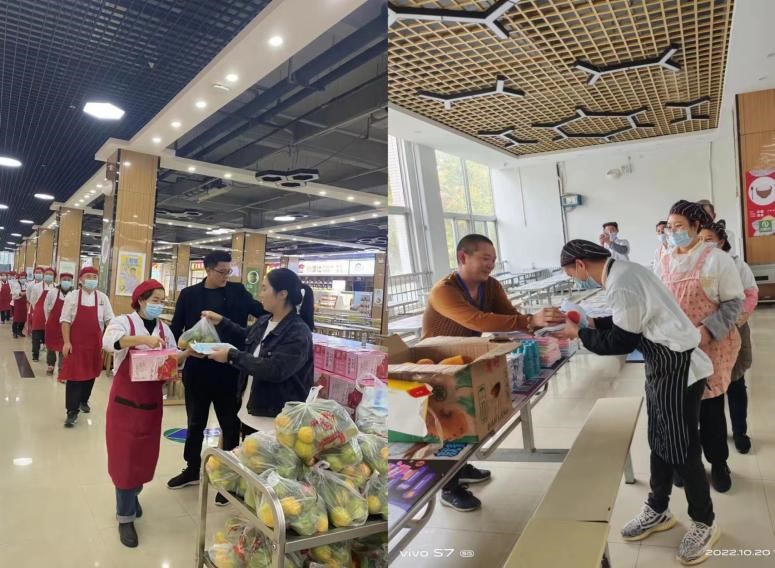 封闭在校,相比平时,工作压力大,工作时间长;相比在家,生活成本高,无法照顾家庭,后勤处想员工之所想,急员工之所急,会同第三方公司采取各种形式慰问一线员工,体现人文关怀,发放牛奶、面包、方便面、饮料、水果、洗护用品、劳保用品等,同时各公司也及时给予入住校园封闭管理的员工相应的生活或工作补贴。