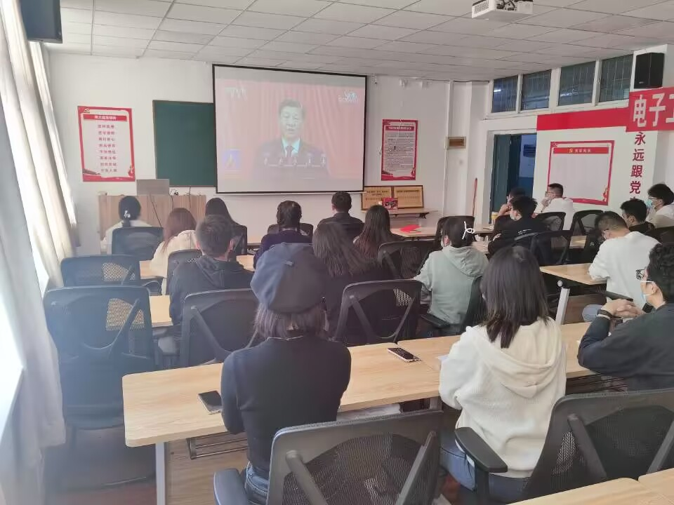 10月16日上午10时,中国共产党第二十次全国代表大会在北京开幕。电子工程学院全体学生党员和部分学生干部通过电视直播、网络、手机客户端等途径认真收看党的二十大开幕会,电子工程学院党委副书记毕轶慧、副院长高国旺、各年级辅导员、部分学生党员和学生干部共115人在雁塔校区华油能源楼905会议室、908会议室、鄠邑校区行知楼321会议室和12号公寓楼党员活动室集中收看。其他学生党员在宿舍收看。