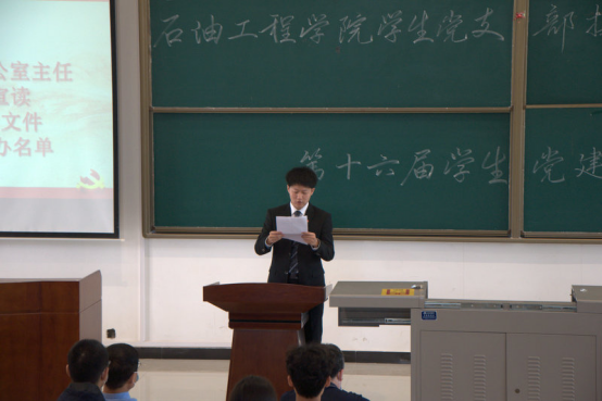 大会第三项,由第十五届学生党建办公室主任刘应豪同志作述职报告,在报告中他对上一年的党建工作进行了总结与反思,提出了对未来学生党建办公室工作的期望并宣读了学生党建办公室任命文件及第十六届学生党建办名单。