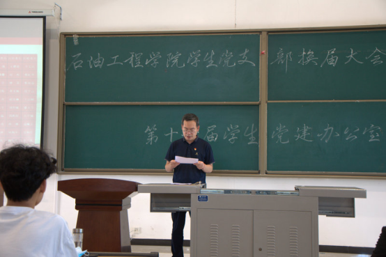 9月28日中午,石油工程学院学生党支部暨第十六届学生党建办公室换届大会在院系楼115教室顺利举行。石油工程学院党委书记马勇、党委副书记张建高、各年级辅导员老师及党员代表参加了本次会议。