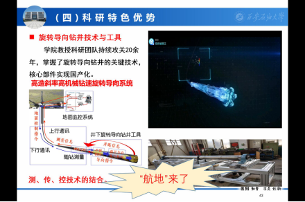随后,高国旺重点从学院科研基地、科研方向、科研特色、科研成果转化、学术交流等方面介绍了学院的科研情况,提到我院的科研创新聚焦于油气资源勘探开发领域的“测”“传”“控”高新技术研究与仪器装备的研制,特别是随着油田数字化、智能化技术的引入,我院的学科优势更加明显。学院在油气勘探开发钻井装备、测井仪器、注水节能技术、长输管道自动化等方向矢志不渝的深耕多年,取得了一些显著的科技成果,学院教授创造性的提出“航地”概念。鼓励同学们一定树立信心,结合导师研究方向,深入到实验室,在导师指导下潜心研究,增强自身的科研能力。