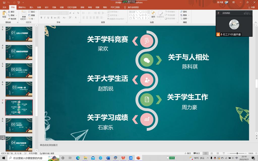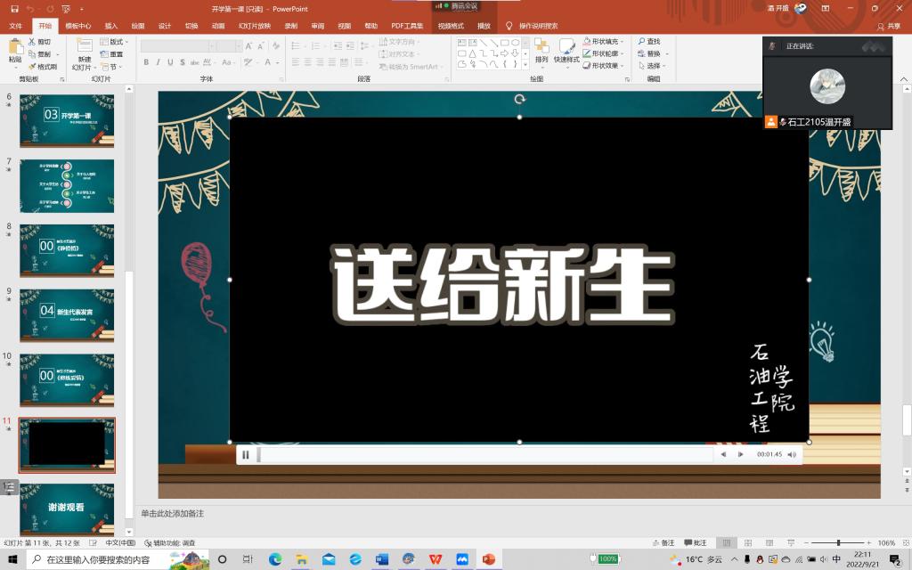为教育引导广大青年学子将青春融入国家之中,并帮助新生尽快适应大学生活,石油工程学院于9月18日晚上开展线上“开学第一课”主题团日活动。学院党委副书记张建高、全体辅导员、高年级学长学姐代表及2022级新生参与本次活动。