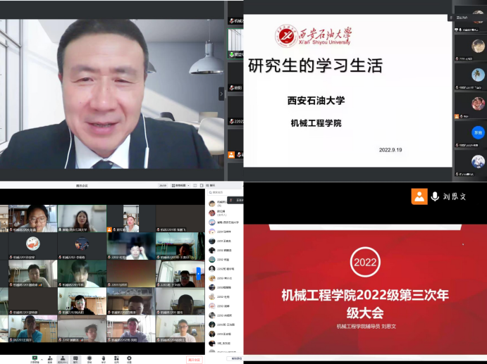 9月17日-19日,机械工程学院召开2022级全体本研新生入学教育线上会议。机械工程学院院长窦益华、副院长崔璐、党委副书记刘冰先后应邀出席会议,会议分别由辅导员欧红娟、刘思文主持。窦益华院长向同学们介绍相关学科专业的特色和优势,开展专业教育,围绕beat365“石油精神办学,铁人精神育人,延安精神铸魂”的特色,将石油精神铁人精神教育和专业教育相结合,引导新生领悟石油精神铁人精神内涵,奋发图强,刻苦学习专业知识,掌握扎实本领。崔璐副院长根据学校研究生相关管理制度,结合院系实际,开展新生校规校纪教育,并组织新生观看疫情防控知识。刘冰副书记参加本科生会议指出,疫情期间实行静态化管理,各位新生要严格落实疫情管理规定,定期进行核酸检测,养成公共区域戴口罩的良好习惯。欧红娟、刘思文老师从遵守校规校级及安全方面做出教育,并希望同学们注意宿舍安全及网络安全等设立好学习目标,保持良好精神面貌,融入集体,要结合自身实际,确立好未来发展方向。