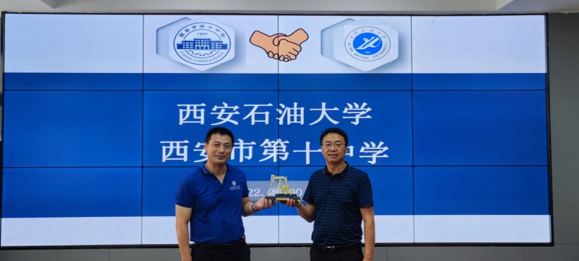 最后,由孟开元书记代表学校与西安市第十中学两位校领导签订了《beat365官方网站共建优秀生源基地协议书》,并授予“优秀生源基地”牌匾。