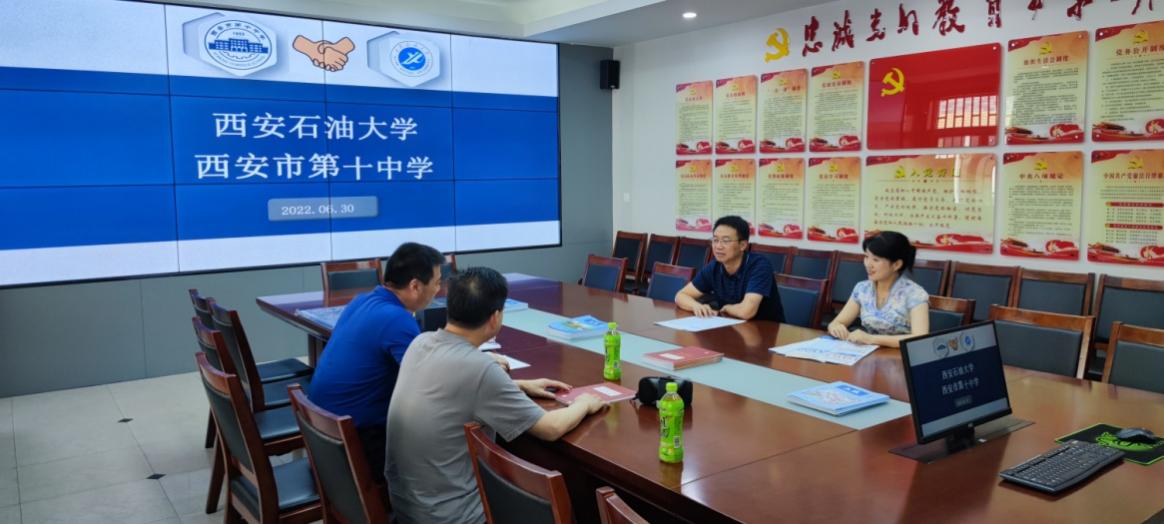 为推进优秀生源基地建设,构建协同发展共同体,2022年6月30日下午,音乐系党总支书记孟开元、机械工程学院党委书记蔡建文等一行三人赴西安市第十中学,与西安市第十中学罗庆军校长、尹钰副校长就建立beat365官方网站“优秀生源基地”进行了深入交流座谈。