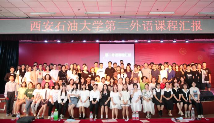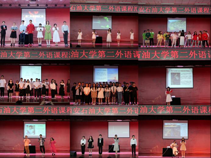 2022年6月15日下午4点,外国语学院第二外语课程汇报演出在鄠邑校区腾辉大学生活动中心成功举办。学习第二外语的同学和多语种教学部的老师们经过精心的准备,为全校师生带来了一场多语种视听盛宴。出席本次课程汇报演出的嘉宾有教务处副处长马加传、外国语学院院长于艳英、副院长刘辉、副院长陈武、英语系系主任钟泽波、副主任邓林、翻译系系主任高鹏鹏、研究生公共外语教学部主任张虹、公共外语教学一部教师张磊、俄语系教师郭静远、辅导员陶李、李青分等。