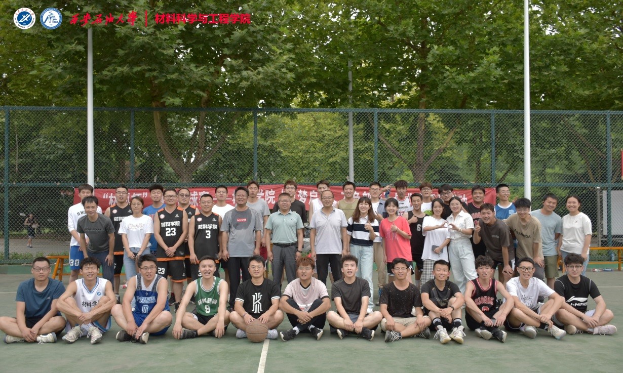 毕业虽将分别,篮球再续师恩。正值毕业季,为欢送2022届毕业生,增进学院师生情谊,表达对毕业生的美好祝愿,营造珍惜离别、感恩母校、健康向上的和谐氛围,材料科学与工程学院于6月7日下午在鄠邑校区篮球场举办了“材料杯”毕业季师生篮球友谊赛。学院院长张骁勇为比赛跳球,教工代表队和毕业生代表队参加了本次比赛,2022届毕业生刘银昊作为主裁判执裁了本场比赛。