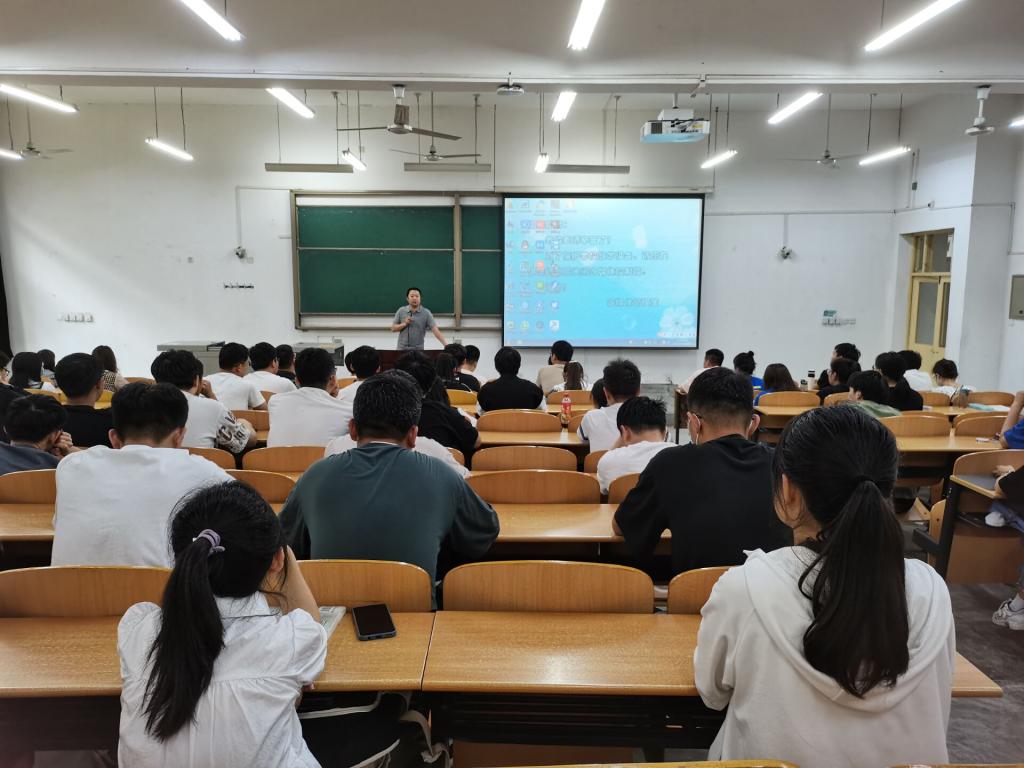 6月10日下午,2020级举办四级经验交流分享会,党委副书记马小刚出席并讲话,全体2020级四级未通过的90余名同学参加,辅导员林晔主持。周椰、胡智杰、韦程溪、凌明等学生代表进行经验分享,为周末应考的同学阐述了平稳考试心态、合理安排时间、快速应对考题等实用性较强的经验。