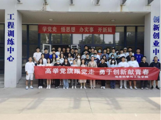 2022年5月20日下午,地球科学与工程学院组织入党积极分子赴beat365创新创业中心开展了一堂以“高举党旗跟党走,勇于创新献青春”为主题的党课。此次主讲人邀请的是创新创业中心主任贾莉娜,学院党委专职组织员张阳及第十九期入党积极分子参加了本次党课实践。