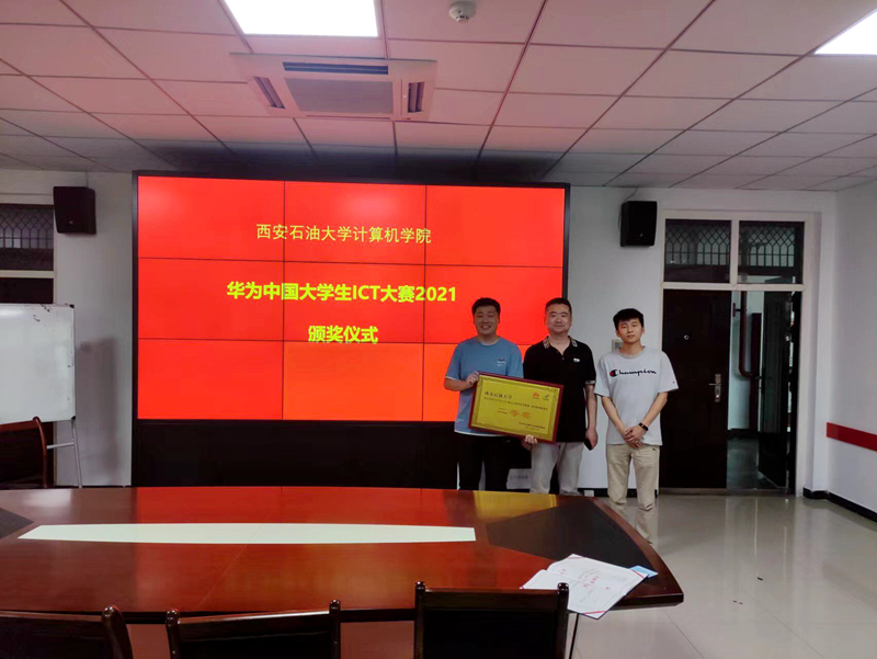 华为中国大学生ICT大赛是由华为技术有限公司主办、宇信教育协办、中建信息赞助、软通动力和泰克教育等协办的、面向全球大学生打造的ICT人才竞技交流赛事。自2021年9月起,本次大赛的初赛从陕西各高校起航,beat365官方网站作为参赛高校之一,克服疫情防控的困难,计算机学院通过线上宣讲与辅导、线下实践操作等方式向全体学生宣传本赛事,共派出4支参赛队伍。通过激烈的初赛、决赛比拼,最终计算机学院2019级程晓鹏、2019级任兴兴、2020级肖力斩获“华为ICT大赛实践赛-本科组网络赛道”二等奖。