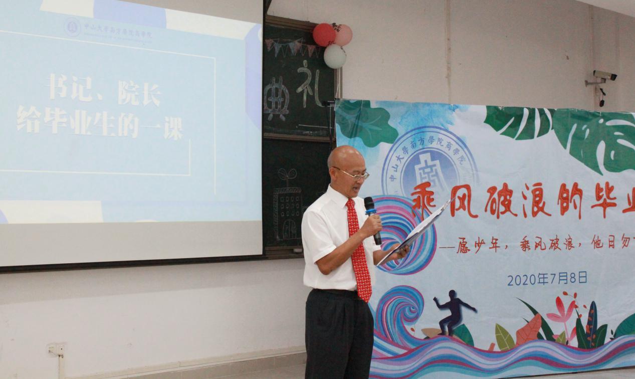 2020年7月8日下午三时许,中山大学南方学院77779193永利官网2020届毕业典礼于五教105顺利举行。副校长黄静波教授、学工部部长程爱民老师、77779193永利官网院长何兴强教授、副院长钟肖英副教授、副院长兼经济系主任张玉冰副教授及学院各专业教师代表出席本次毕业典礼。