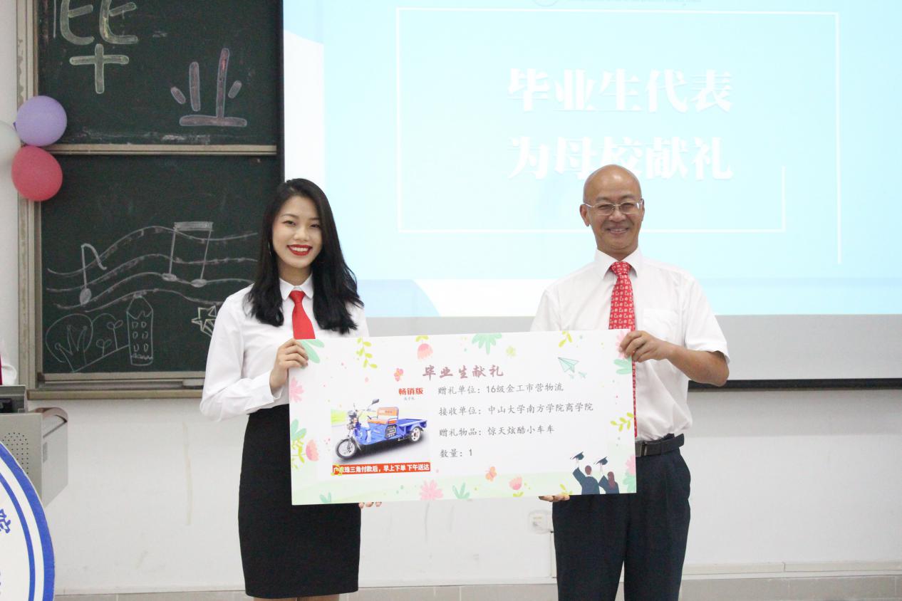 毕业生代表为母校献礼。