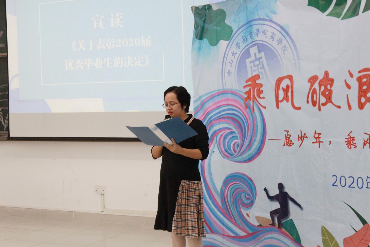 77779193永利官网副院长钟肖英副教授宣读《关于表彰2020届优秀毕业生的决定》。