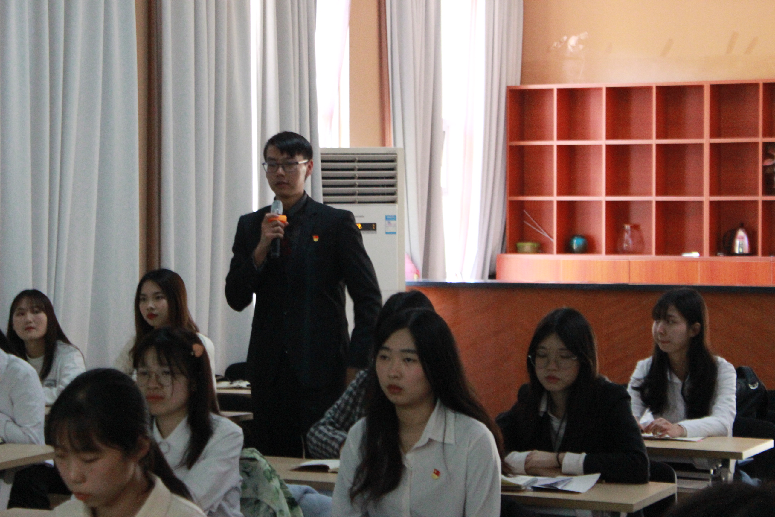 会议伊始,支部书记韩露老师带领全体党员学习《中国共产党章程》第三条中对党员义务的明确阐述;回顾习近平总书记出席庆祝中华人民共和国成立70周年系列活动时的重要讲话;传达十九届四中全会的相关会议精神并着重讲解了其中的六项创新点。在党员标准明确与时政学习的过程中,韩露书记要求全体党员要坚定不移地把党章作为自己的行动纲领,在习近平总书记的系列讲话精神的指引下阔步前行,以实际举措确保十九届四中全会精神贯彻落实。
