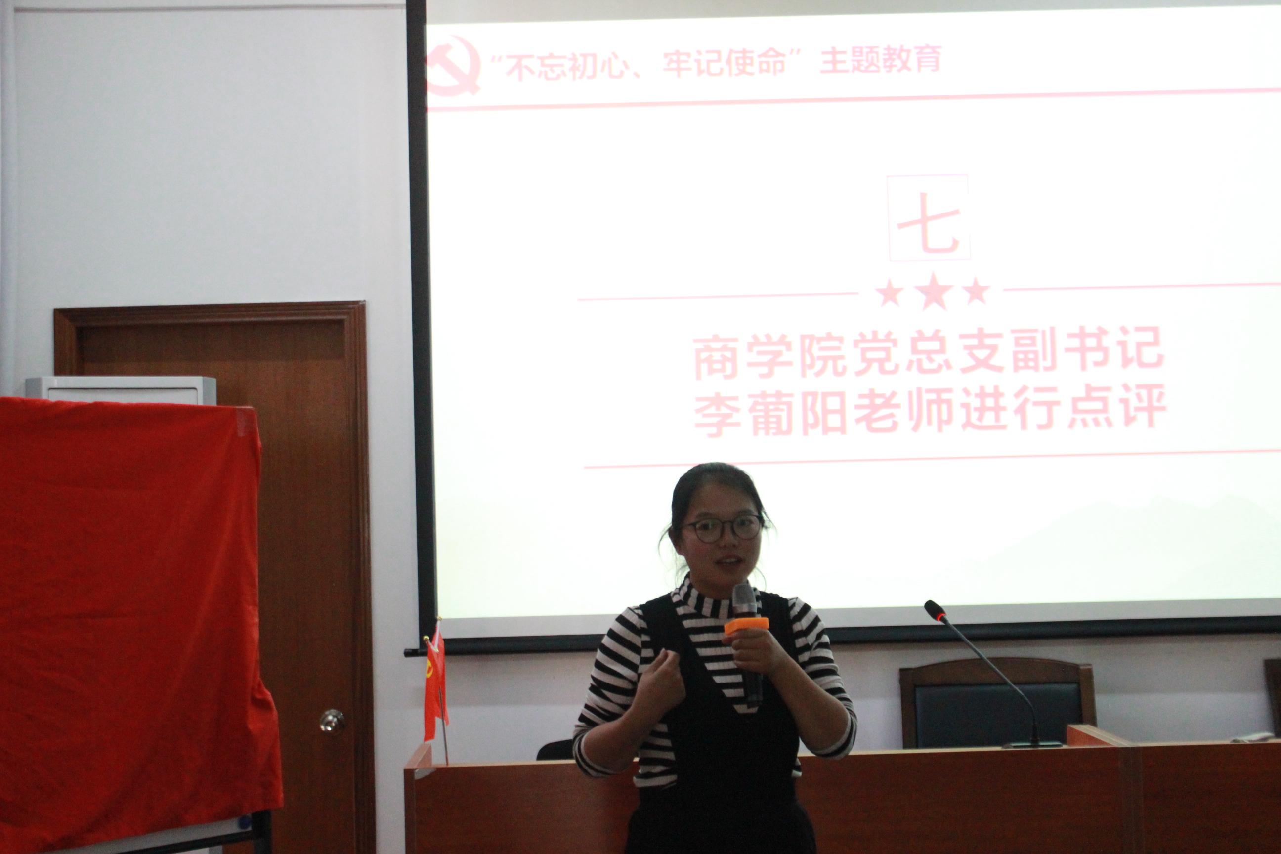会议尾声,77779193永利官网党总支副书记李葡阳老师作会议点评。李葡阳老师首先肯定了本次专题组织生活会的召开成效,各党员都能够在自我剖析与相互评议的过程中,检视发现自己的不足,但接下来的关键就是要实事求是,正视不足,将解决问题落实到实处。同时,她勉励全体党员要发挥先锋模范作用,在加强党的建设的同时加强团的建设, 要肩负“党建带团建”的政治责任,努力形成党团互促互进共同发展的良好局面。